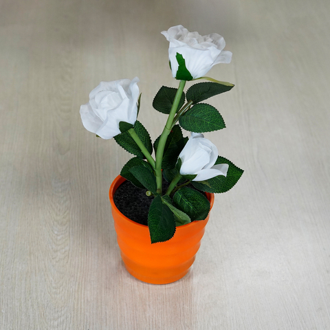 Maceta triple Blanca Rosa naranja con luz-USB/luz de noche regulable con batería para decoración de dormitorio, regalo de San Valentín
